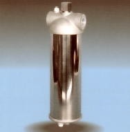 SUS304製で高温用流体のろ過に適しており、シェル、ヘッド、べ一ス、の3部分に分割できるので力一トリッジ交換時、ハウジング全体の洗浄が簡単にでき、センターボルト締め付け方式ですので、力一トリッジの交換が容易です。又、設計圧力は10kg/cm2と優れた性能を有しております。