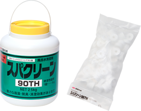 | 1m3 | 20~30g(専用カップ1杯) | 2~3錠(1錠20g) | 10~15g(専用カップ1/2杯) | 1錠(1錠15g) | 水10Lにカップ1杯分(25g)を溶解し使用する |