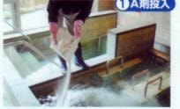 (投入後は床がすべりやすくなります。ご注意ください。)